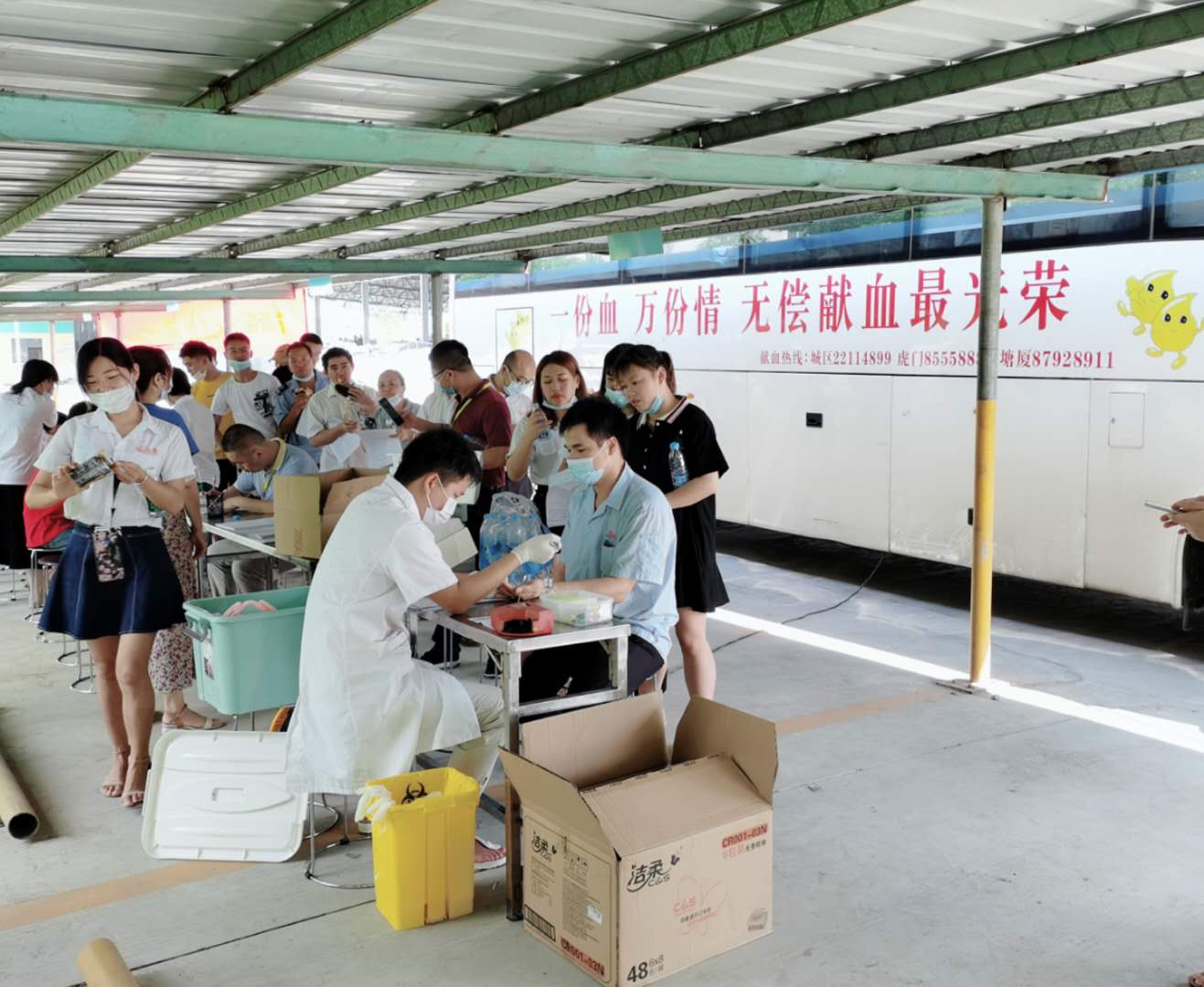 活動當(dāng)天,酷熱的天氣更是為我司員工增添了獻(xiàn)血的熱情,發(fā)斯特家人們一早就按捺不住了,等待獻(xiàn)血車的到來。終于等到了天使的光臨,大家表現(xiàn)出良好的精神風(fēng)貌,按時來到獻(xiàn)血車旁,紛紛有序地聽從醫(yī)護(hù)人員的安排進(jìn)行檢測、采血等事項(xiàng),在公司領(lǐng)導(dǎo)孫董、吳總的率先帶領(lǐng)下,在獻(xiàn)血車旁拉起了長長的隊(duì)伍。值得點(diǎn)贊的是,在這支隊(duì)伍中,更有一群吳總的獅友從深圳遠(yuǎn)赴而來,助力支持活動的開展。大家都滿懷激動和熱情,盡管有部分體檢不合格,但是在不算寬敞的采血車室內(nèi)卻充滿著我們員工真摯的歡笑和愛心的傳遞、團(tuán)結(jié)友愛、無私奉獻(xiàn)的精神,這便是我們的意義所在。